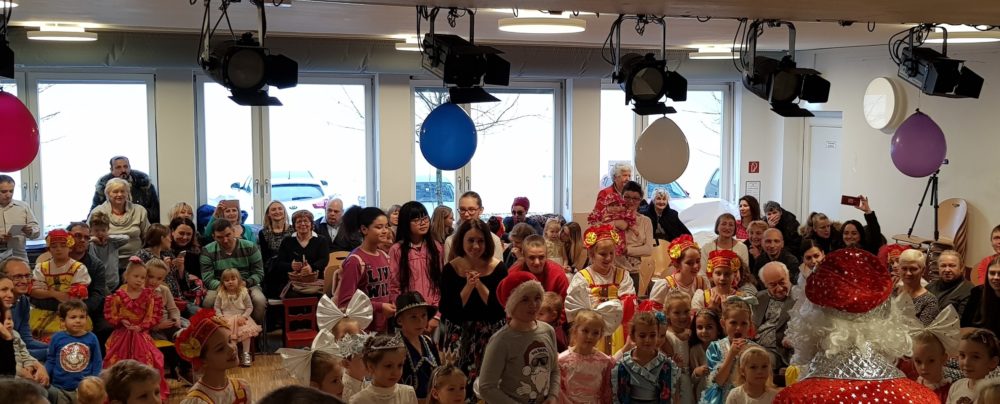 Das wundervoll eingespielte gemeinsame Spektakel der JSDR Kindergruppe München, Tanzensemble LETAS mit Choreografin Elena Specht und Gesangschule „Singende Herzen“, Gesangleiterin Ekaterina Miller hat am 15. Dezember im EineWeltHaus München eine Super Stimmung geschaffen, bei der alle Anwesenden in das Szenario mit einbezogen wurden.